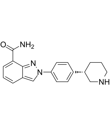 Niraparib (MK-4827) is a highly potent and orally bioavailable PARP1 and PARP2 inhibitor with IC50s of 3.8 and 2.1 nM, respectively. Niraparib leads to inhibition of repair of DNA damage, activates apoptosis and shows anti-tumor activity[1][2][3].
